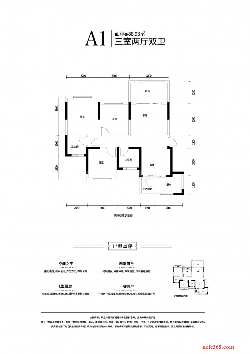 建面:88.93㎡/